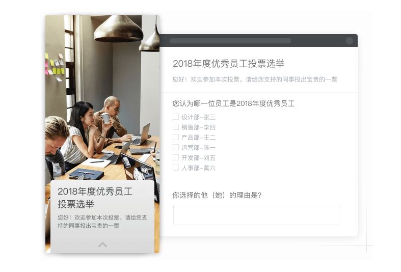 整个投票页面从内容到排版都可以灵活自定义,更贴近企业风格和文化,数据收集也更快捷。